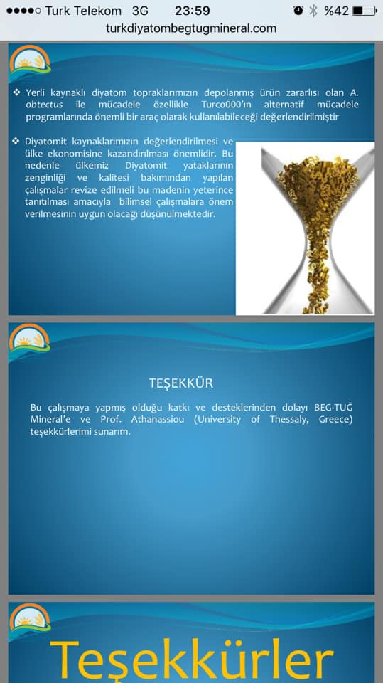 Beg Tuğ Türk Diyatom Toprağında Yaptığımız Ürünler 2016 Dünya Bitki Kongresine Ürünlerimiz ile İlgili Yapılan Bilimsel Çalışmalar Sunulmuş ( Tahıl ) Depo Zararlarına Karşı Mücadelede, Özelikle TURKO- 00 ALTERNATİFSİZ ÜRÜN OLARAK Olur Almış, Kongrenin Bil